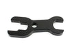 Our black anodized CNC machined billet aluminum wrench is a useful addition to your racing tool box. Designed for use with our hybrid adjusters and hex links/turnbuckles, this small wrench works in tight spaces and will will not damage the finish on the adjuster.We recommend using our aluminum wrench together with a standard adjustable crescent wrench, the aluminum wrench can be used for adjustment and initial tightening, final tightening with the larger crescent wrench is recommended for more tightening torque. We've also machined a bottle cap opener into the wrench to help you enjoy your favorite cold beverage of choice at the track or the garage! A recess has also been machined into the back of the wrench to hold the provided 3/16" Allen wrench used in all of the Titanium socket head cap screws. Sold individually. Made in USA.
