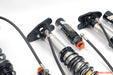 Are you the most dedicated enthusiast on the race track? Elevate your racing game to a championship level by using all options that AST 3-WAY MOTORSPORT SUSPENSION has to give. Challenge your vehicle by adjusting the rebound and the low- and highspeed compression adjustment separately with a remote reservoir. Each adjustment position provides distinct feedback, delivering a unique driving sensation. The inverted strut design is engineered to handle heavy side loads and braking forces. Both the front and rear dampers in this kit feature a MONOTUBE coilover design. You have the flexibility to adjust spring rates on these dampers. With this suspension you have the capability to fine-tune and customize three critical aspects of your vehicle’s suspension. You can adjust the rebound, means you can control the return to extension of your dampers. With 12 distinct positions to choose from, each adjustment delivers distinct feedback and a unique driving experience. Besides that you can adjust the compression adjustment of this suspension. It allows you to control how quickly the suspension compresses (moves inwards) when the vehicle encounters changing circumstances on the road or track. With this kit you can adjust low- and high speed compression adjustment separately. Low-speed compression refers to the suspension reacts to gentle and gradual compression forces. High-speed compression addresses rapid and forceful impacts. It’s important to balance the rebound with the compression adjustment. You can stiffen the rebound / compression settings to reduce body roll during cornering, improve responsiveness, and maintain tire contact with the road for better traction. But also fine-tune the ride comfort by controlling the compression. This set of suspension also includes, where applicable, camber-adjustable front Top Mounts and solid rear Top Mounts. The camber adjustment will offer you more wheel adjustment and allow this geometry to be altered to transform front -end grip.