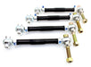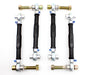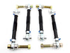 BMW F8X adjustable Rear Upper Arms (RUA) are an absolute necessity to maintain proper rear camber and reduce tire wear on the street and track. The stock BMW setup has an aggressive camber curve through bump travel, which is very apparent on lowered cars. Excess negative camber causes premature tire wear on the inside edge, and reduced traction on acceleration while too little camber will limit rear grip while cornering. Our Rear Upper Arms provide a wide adjustment range for precise rear camber alignment that is easily optimized for street or track driving while eliminating bushing deflection with smooth articulating Teflon lined rod ends in place of the soft factory rubber bushings. Our kit replaces the factory links commonly referred to as the rear wishbone and rear guide links. BMW F8X Rear Upper Arms are gun drilled 2024 Aluminum links to reduce weight, then are Black Anodized to prevent corrosion and provide a durable finish. Our 360 degree 6061-T6 Aluminum Rotating Clamp design allows for quick, precise adjustment. Our Clamps tightened down with Blue Anodized Titanium Socket Head Cap Screws gives easy access to adjust camber settings, shaving off even more unsprung weight without compromising strength. Our Rear Upper Links provide superior performance, durability, and ease of adjustment. Long gone are the days of fumbling with wrenches to tighten jam nuts while trying to trying to keep your bearings oriented correctly. FK Spherical Bearings and Rod Ends are manufactured in Connecticut and utilize a Teflon liner to provide quiet operation, lower friction, smooth articulation, and eliminates bushing deflection under load. Sold as a complete kit for one car (4 total arms). Made in the USA.