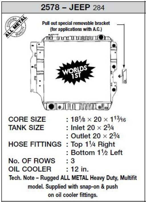 CSFOriginal price $ 565.75Original price $ 565.75 - Original price $ 565.75Original price $ 565.75Current price $ 519.00$ 519.00 - $ 519.00Current price $ 519.00| /In stockWorld exclusive multi-fit model, only from CSF - fits all automatic and manual Wrangler YJ and TJ models. CSF's #1 selling copper/brass Jeep model ...