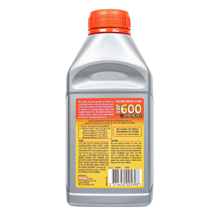 Motul (2 Pack) 100949 8068HL RBF 600 Factory Line Dot-4 100 Percent Synthetic Racing Brake Fluid - 500 ml