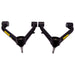 B8 Control Arms are a direct fit upgrade for factory upper control arms on trucks and SUVs. The kit contains a pair of control arms which correct the caster alignment for better straight line stability with lifted suspensions, and the improved pivot angles increase wheel travel and reduce stress on the joints. These strong black powder-coated 4130 chromoly steel arms are a tubular design which allows for more spring and shock clearance and feature greasable polyurethane bushings and heavy duty ball joints for the ideal combination of ride quality and durability with minimal maintenance needed. They come with detailed instructions and all necessary hardware for easy installation and are compatible with all Bilstein shocks and coilover kits. All components are replaceable.