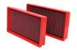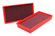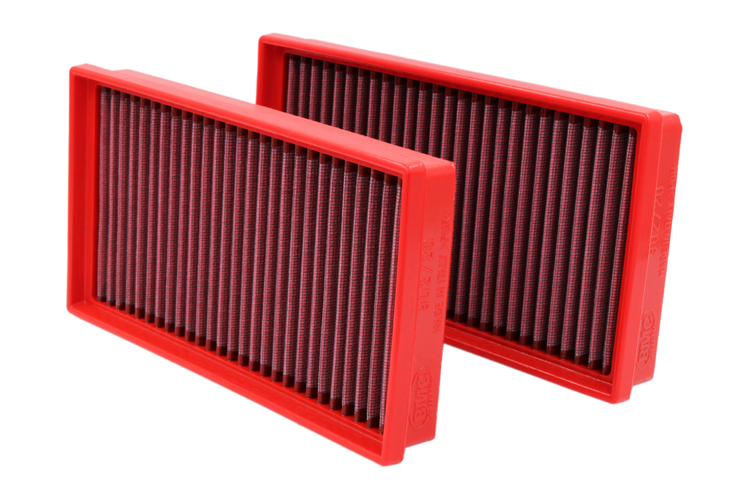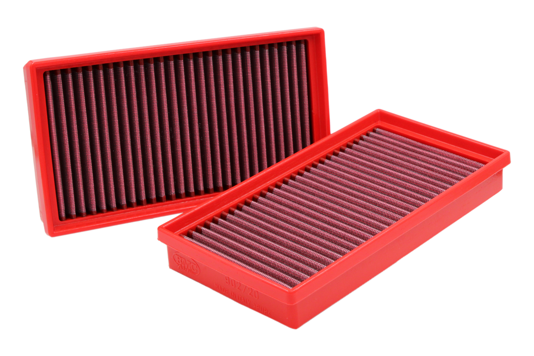 The panel / cylindrical air filter is commonly referred to as "replacement air filter". It is installed in the vehicle's original airbox to replace the OEM air filter. It is made of highly performing materials that allow an increased air flow combined with a more efficient filtration, guaranteeing containment of all impurities from as small as 7 microns (compared to OEM's 10 microns). Air flow chart for a sample BMC air filter against an OEM paper filter Temperature 25C° - Humidity 25% - Pressure 1020mbar Test ran with oem airbox, and the related air flow constrictions. This chart has a pure illustrative purpose and does not refer to the present filter. BMC air filters are produced using a "Full Moulding" system that enables the characteristic red filter to be realized from a single mould with no welded joints thus avoiding easy breakage. The rubber used in BMC air filtering systems has a long life, is very durable and has optimum adhesion characteristics to all shapes of airboxes. BMC filters are made of a multi-layered cotton gauze soaked with low viscosity oil covered with an epoxy coated alloy mesh to ensure protection from petrol fumes and oxidization due to air humidity. All BMC air filters are pre-oiled, and they can be washed and regenerated by using the appropriate BMC regeneration kit. For any other info, please see the FAQ page.