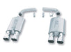 To complete this installation you will need to MODIFY the Original Equipment (O.E.) Mid-Pipe by expanding the outlets from to 2.25" to 2.5". This system upgrades your '84-'91 Corvette from the stock 2.25" diameter Axle-Back system to a more aggressive 2.5". The system features the classic S-Type sound with no drone inside the vehicle. It has dual BORLA® intercooled style 3.38" x 3" rectangle polished T-304 stainless steel tips on each muffler for a custom appearance. BORLA® Cat-Back™ & Axle-Back exhaust systems feature patented straight-through and multi-core technology to unleash hidden horsepower. Increased exhaust velocity adds power, driving excitement, fuel economy, and the distinctive BORLA® Sound of Power respected by motoring enthusiasts everywhere. Each system is built from premium, high-quality T-304 austenitic stainless steel, superior to T-400 series knockoffs (such as 409), to give you the absolute best in performance and durability. Ultra-smooth mandrel bends ensure maximum flow & power, and precision computer numerical control (CNC) manufacturing ensures an accurate fit. Best of all, BORLA® stands behind every system with a Million-Mile Warranty. Just what you'd expect from the world's most experienced (and most winning) exhaust brand.