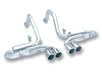 BORLA(r) has once again set the pace in the Corvette performance exhaust world. This 2.5" diameter into the mufflers with dual 2" out Cat-Back(tm) system features S-Type Classic sound and dual 4" round polished T-304 stainless steel tips on each side. BORLA(r) Performance continues to prove why we’ve have led the aftermarket performance exhaust industry for over 40 years. BORLA(r) has an exalted heritage with Chevrolet performance vehicles. From the C5R LeMans winning Corvettes to privateers like KTEC, Pratt-Miller, Lingenfelter and Lou Gigliotti who have enhanced BORLA(r)’S knowledge of both the vehicle dynamics and the power-plant engineering. The C5 is a muscle car with a big powerful engine on a sophisticated, sexy chassis. BORLA(r) has always used the transfer of technology from racing to the street as a tool, and the C5, and C5 Z06 play right into that wheelhouse. With an experienced R&D staff, the BORLA(r) team has given the C5 the attention it deserves by rolling out several systems for the Corvette. Airflow management and exhaust engineering is a science with which BORLA(r) has more experience than anyone in the exhaust aftermarket. BORLA(r) offers a variety of options for the C5, and C5 Z06. Choose from several tip styles and muffler designs. BORLA(r) Performance Industries, the original pioneers of premium, high quality T-304 austenitic stainless steel (superior to 409 or aluminized steel) free-flow exhaust utilizes patented award and race winning technology to deliver quality, sound, performance gains and enhanced fuel economy — all with an easy bolt-on installation. Best of all, BORLA(r) street products carry an unsurpassed written million-mile warranty.