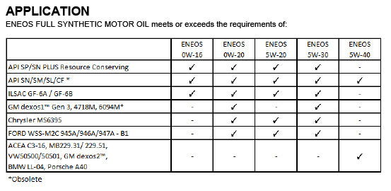 - The high-performance ENEOS 5W-20 has been certified as meeting the latest API SP SAE 5W-20 standard established by the American Petroleum Institute and exceeds service fill requirements.
