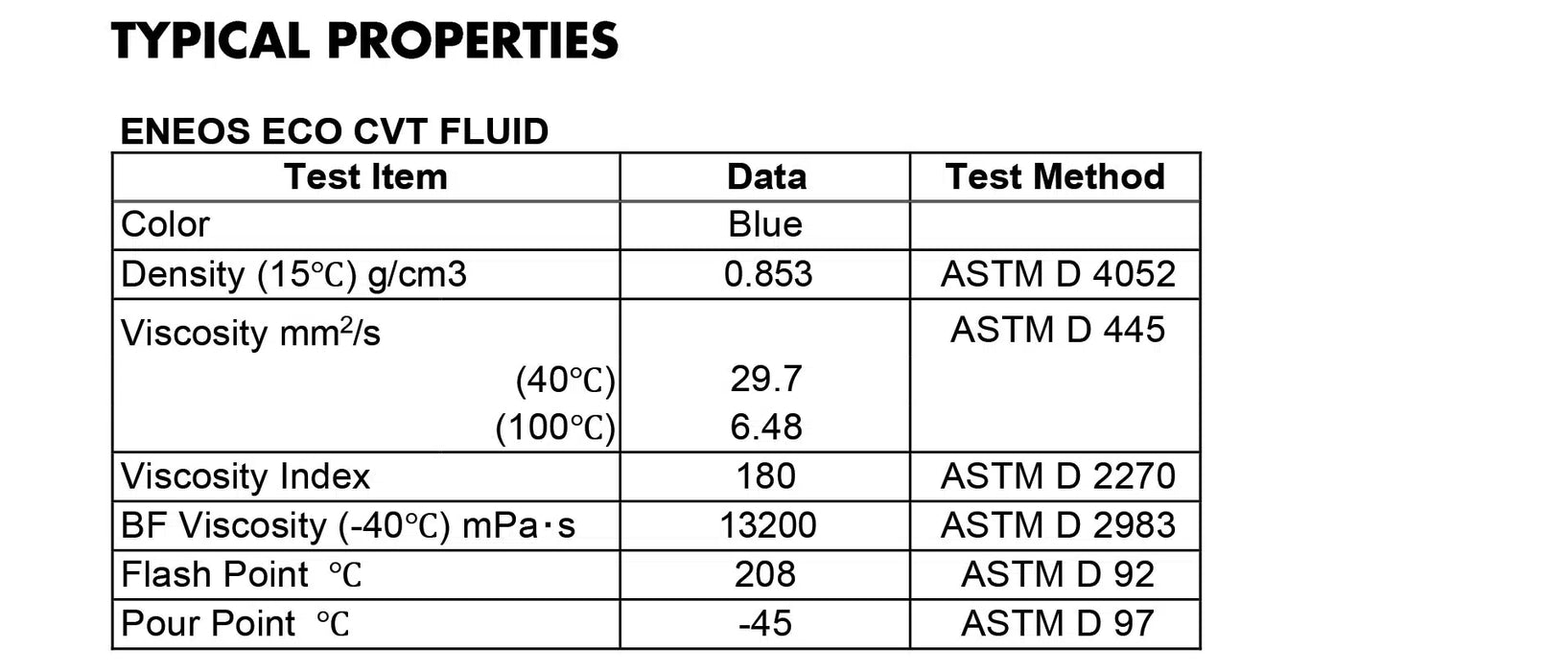 ENEOS ECO CVT FLUID is not recommended for Toyota Hybrid CVT and Nissan Extroid CVT. Always consult your vehicle owner’s manual for manufacturer recommendations.