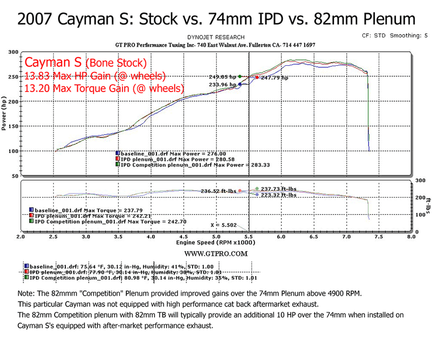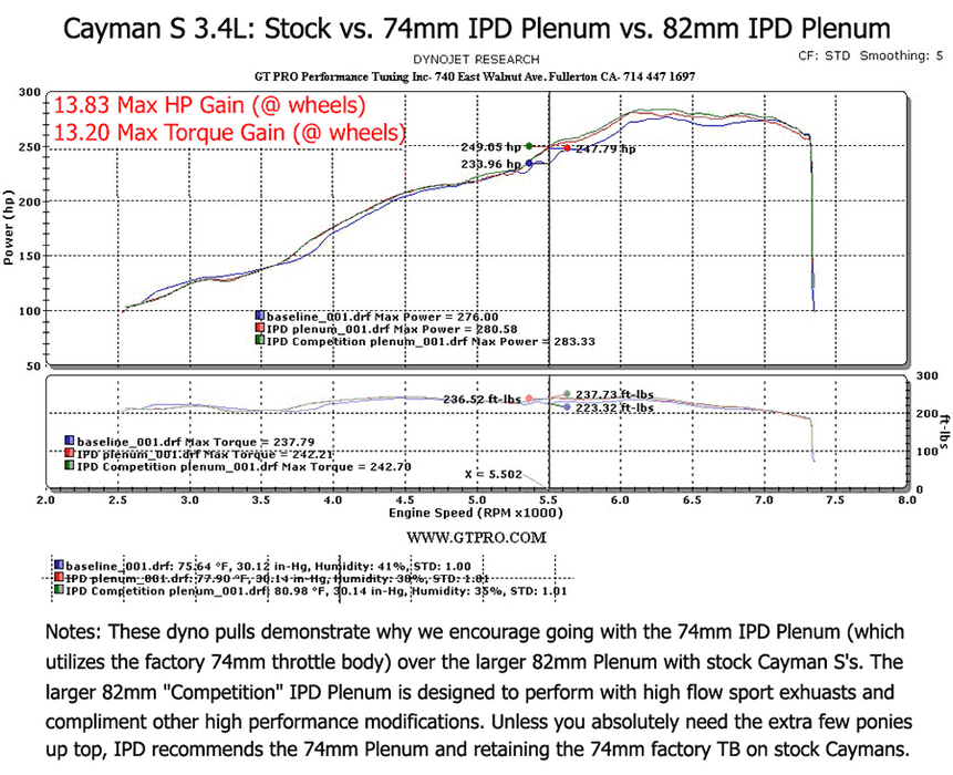 IPD 987.1 Cayman/Boxster 2.7/3.4L Competition 82mm Plenum ('07-'08): Power Gains 20 WHP / 18 WTQ