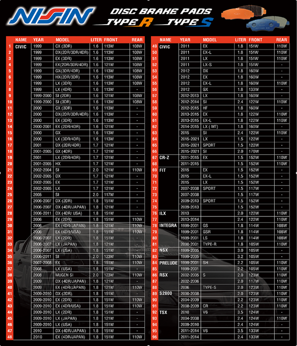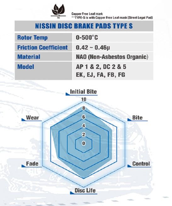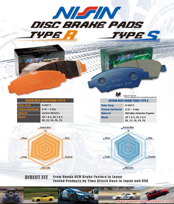 NISSIN Front Street Use Brake Pad for Honda S2000 00-09, Civic Si 06-11, and Acura RSX Type S 02-06