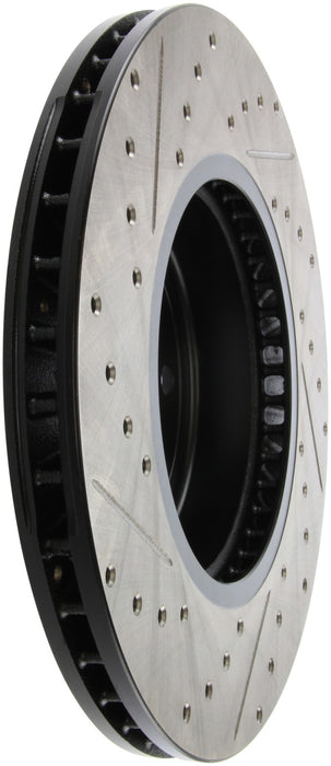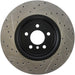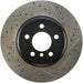StopTech Drilled and Slotted Sport Rotors are 1-piece direct replacement brake discs for factory brake systems and stock calipers that look great behind your wheels – and offer significantly improved braking performance. The unique cross-drilling and slotting aids with heat and brake dust dispersal; prevents glazing of the pads; adds bite and improves wet and dry braking performance. Built to last; the black e-coating provides protection from corrosion and the high carbon metallurgy (in most applications) offers quieter operation; better crack resistance and increased performance.