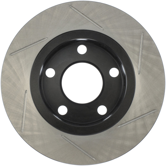 StopTech Slotted Sport Rotors are 1-piece direct replacement brake discs for factory brake systems and stock calipers that look great behind your wheels – and offer significantly improved braking performance. The unique slotting aids with heat and brake dust dispersal; prevents glazing of the pads; adds bite and improves wet and dry braking performance. Built to last; the black e-coating provides protection from corrosion and the high carbon metallurgy (in most applications) offers quieter operation; better crack resistance and increased performance.