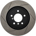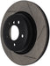 StopTech Slotted Sport Rotors are 1-piece direct replacement brake discs for factory brake systems and stock calipers that look great behind your wheels – and offer significantly improved braking performance. The unique slotting aids with heat and brake dust dispersal; prevents glazing of the pads; adds bite and improves wet and dry braking performance. Built to last; the black e-coating provides protection from corrosion and the high carbon metallurgy (in most applications) offers quieter operation; better crack resistance and increased performance.