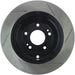 StopTech Slotted Sport Rotors are 1-piece direct replacement brake discs for factory brake systems and stock calipers that look great behind your wheels – and offer significantly improved braking performance. The unique slotting aids with heat and brake dust dispersal, prevents glazing of the pads, adds bite and improves wet and dry braking performance. Built to last, the black e-coating provides protection from corrosion and the high carbon metallurgy (in most applications) offers quieter operation, better crack resistance and increased performance.