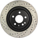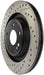 StopTech Drilled and Slotted Sport Rotors are 1-piece direct replacement brake discs for factory brake systems and stock calipers that look great behind your wheels – and offer significantly improved braking performance. The unique cross-drilling and slotting aids with heat and brake dust dispersal; prevents glazing of the pads; adds bite and improves wet and dry braking performance. Built to last; the black e-coating provides protection from corrosion and the high carbon metallurgy (in most applications) offers quieter operation; better crack resistance and increased performance.