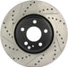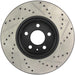 StopTech Drilled and Slotted Sport Rotors are 1-piece direct replacement brake discs for factory brake systems and stock calipers that look great behind your wheels – and offer significantly improved braking performance. The unique cross-drilling and slotting aids with heat and brake dust dispersal; prevents glazing of the pads; adds bite and improves wet and dry braking performance. Built to last; the black e-coating provides protection from corrosion and the high carbon metallurgy (in most applications) offers quieter operation; better crack resistance and increased performance.