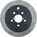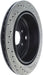 StopTech Drilled and Slotted Sport Rotors are 1-piece direct replacement brake discs for factory brake systems and stock calipers that look great behind your wheels – and offer significantly improved braking performance. The unique cross-drilling and slotting aids with heat and brake dust dispersal; prevents glazing of the pads; adds bite and improves wet and dry braking performance. Built to last; the black e-coating provides protection from corrosion and the high carbon metallurgy (in most applications) offers quieter operation; better crack resistance and increased performance.