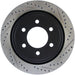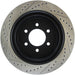 StopTech Drilled and Slotted Sport Rotors are 1-piece direct replacement brake discs for factory brake systems and stock calipers that look great behind your wheels – and offer significantly improved braking performance. The unique cross-drilling and slotting aids with heat and brake dust dispersal; prevents glazing of the pads; adds bite and improves wet and dry braking performance. Built to last; the black e-coating provides protection from corrosion and the high carbon metallurgy (in most applications) offers quieter operation; better crack resistance and increased performance.