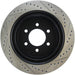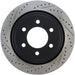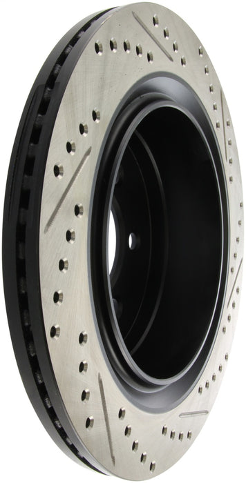 StopTech Drilled and Slotted Sport Rotors are 1-piece direct replacement brake discs for factory brake systems and stock calipers that look great behind your wheels – and offer significantly improved braking performance. The unique cross-drilling and slotting aids with heat and brake dust dispersal; prevents glazing of the pads; adds bite and improves wet and dry braking performance. Built to last; the black e-coating provides protection from corrosion and the high carbon metallurgy (in most applications) offers quieter operation; better crack resistance and increased performance.