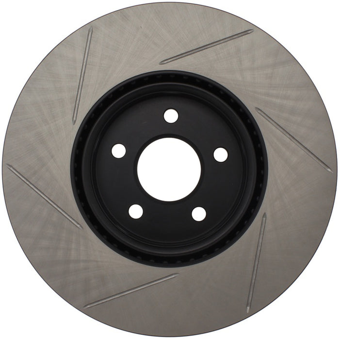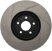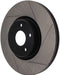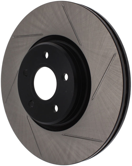 StopTech Slotted Sport Rotors are 1-piece direct replacement brake discs for factory brake systems and stock calipers that look great behind your wheels – and offer significantly improved braking performance. The unique slotting aids with heat and brake dust dispersal; prevents glazing of the pads; adds bite and improves wet and dry braking performance. Built to last; the black e-coating provides protection from corrosion and the high carbon metallurgy (in most applications) offers quieter operation; better crack resistance and increased performance.