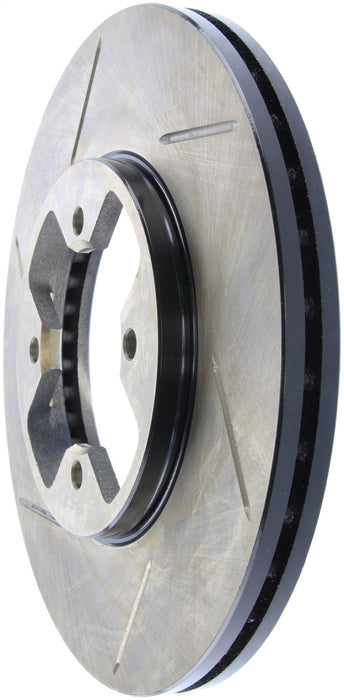 StopTech Slotted Sport Rotors are 1-piece direct replacement brake discs for factory brake systems and stock calipers that look great behind your wheels – and offer significantly improved braking performance. The unique slotting aids with heat and brake dust dispersal, prevents glazing of the pads, adds bite and improves wet and dry braking performance. Built to last, the black e-coating provides protection from corrosion and the high carbon metallurgy (in most applications) offers quieter operation, better crack resistance and increased performance.