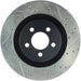 StopTech Drilled and Slotted Sport Rotors are 1-piece direct replacement brake discs for factory brake systems and stock calipers that look great behind your wheels – and offer significantly improved braking performance. The unique cross-drilling and slotting aids with heat and brake dust dispersal; prevents glazing of the pads; adds bite and improves wet and dry braking performance. Built to last; the black e-coating provides protection from corrosion and the high carbon metallurgy (in most applications) offers quieter operation; better crack resistance and increased performance.