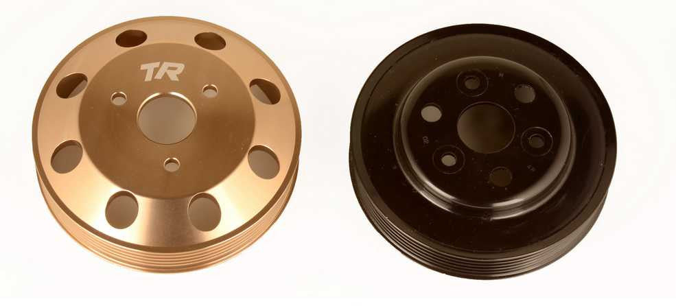 Reduce the load on the water pump and increase engine performance with Tomioka Racing Lightweight Water Pump Pulley for Subaru BRZ, Scion FR-S and Toyota FT-86. This Aluminum Lightweight Pulley is only 50% of the original factory pulley weight, making the water pump lighter and easier for the engine to move! Factory waterpump weighs at 1.0 LBS in comparison to TR waterpump at 0.50 LBS.